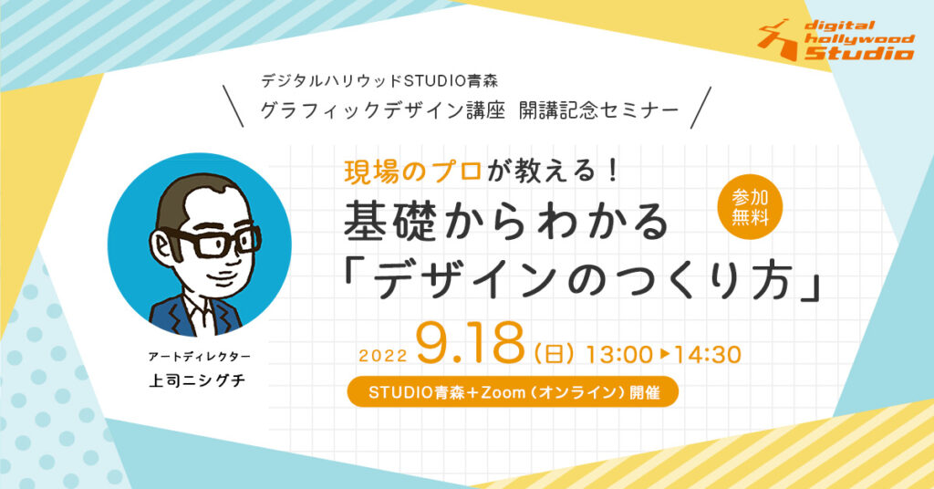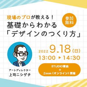デジタルハリウッドSTUDIO青森(Webや動画スキルを習得できる専門スクール)で、グラフィックデザイン講座の開講を記念して開催されたセミナー「現場のプロから教わる!基礎からわかる『デザインのつくり方』」。
